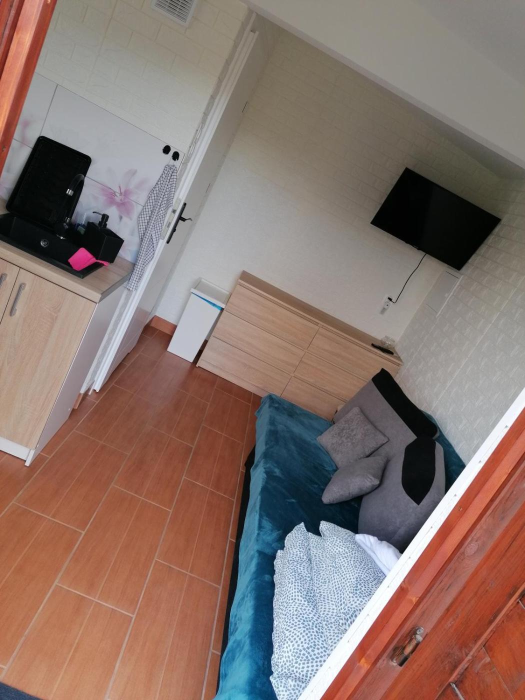 Domek. This chalet comes with 1 bedroom, kitchenette, a terrace and 1 bathroom with a shower. Guests will find a refrigerator, kitchenware and a microwave in the kitchenette. The chalet also includes a barbecue. The chalet features a private entrance, a dining area, an electric kettle, a flat-screen TV, as well as garden views. The unit has 2 beds. Domek - 4 osobowy. ;