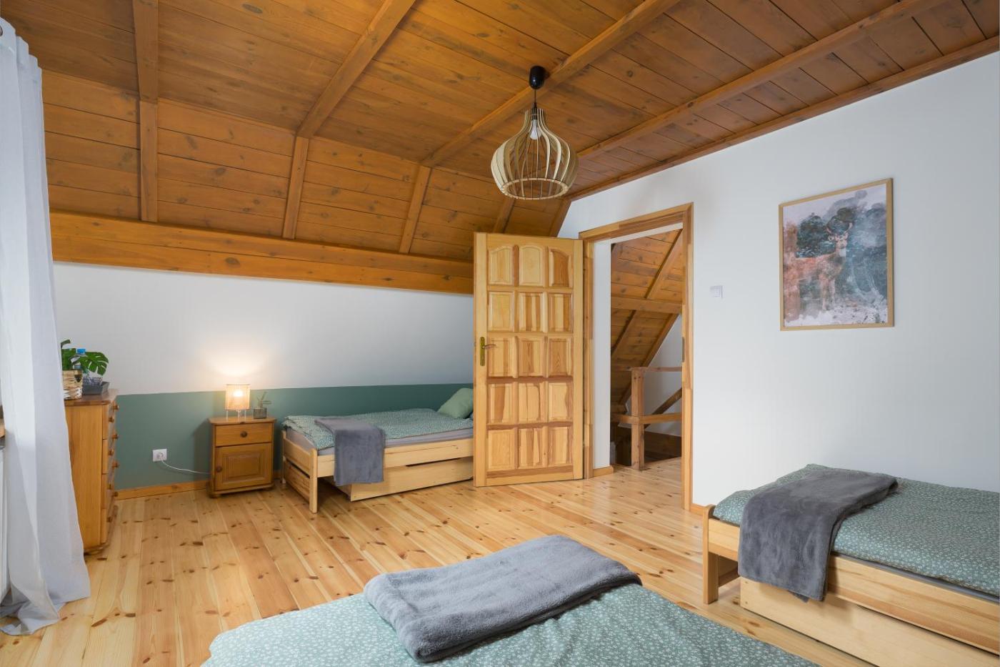 Dom z 2 sypialniami. Guests will have a special experience as this holiday home features a fireplace. Featuring a private entrance, this holiday home is comprised of 1 living room, 2 separate bedrooms and 1 bathroom with a bath or a shower and a hairdryer. Guests will find a stovetop, a refrigerator, kitchenware and an oven in the fully equipped kitchen. The holiday home also has a barbecue. Boasting a terrace, this holiday home also offers a dining area, an electric kettle and a flat-screen TV. The unit offers 6 beds. Dom wakacyjny - 6 osobowy. Powierzchnia pokoju ok.: 100 mkw.