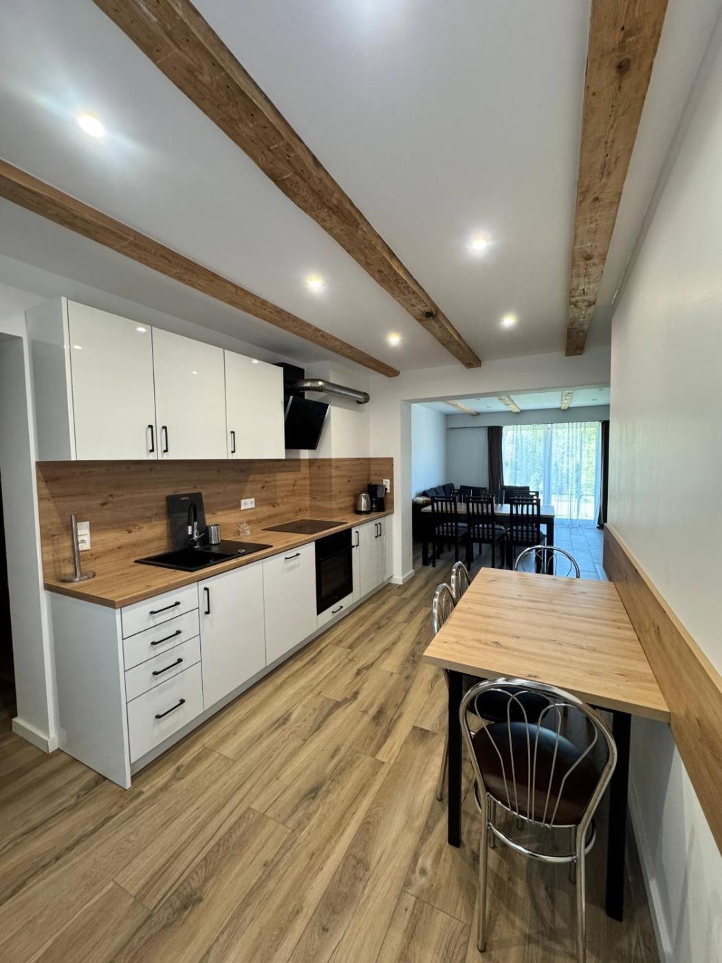 Dom z 3 sypialniami. The holiday home features heating, as well as a shared bathroom featuring a shower. Guests will find a stovetop, a refrigerator, a dishwasher and kitchenware in the fully equipped kitchenette. The holiday home also offers a barbecue. The holiday home provides a flat-screen TV with cable channels, a washing machine, a coffee machine, a dining area as well as garden views. The unit offers 5 beds. Dom wakacyjny - 7 osobowy. Powierzchnia pokoju ok.: 110 mkw.