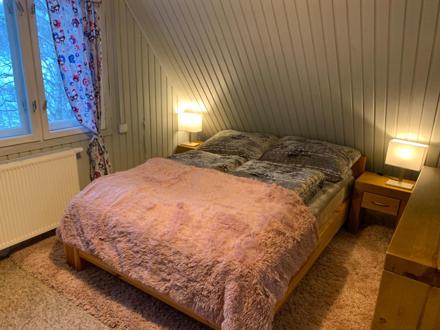 Dom z 2 sypialniami. Featuring a private entrance, this holiday home is comprised of 1 living room, 2 separate bedrooms and 1 bathroom with a walk-in shower and a hairdryer. Guests will find a stovetop, a refrigerator, kitchenware and an oven in the kitchen. The holiday home also has a barbecue. Boasting a terrace with garden views, this holiday home also offers a tea and coffee maker and a flat-screen TV with cable channels. The unit offers 5 beds. Dom wakacyjny - 8 osobowy. Powierzchnia pokoju ok.: 70 mkw.